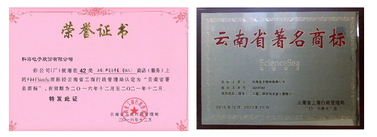 隨著市場(chǎng)經(jīng)濟(jì)的日益深入,科海電子股份有限公司實(shí)施商標(biāo)戰(zhàn)略,憑借優(yōu)質(zhì)的產(chǎn)品質(zhì)量,強(qiáng)大的云南市場(chǎng)占有率、市場(chǎng)覆蓋率,優(yōu)良的企業(yè)文化及形象,健全的售后服務(wù)體系,積極爭(zhēng)創(chuàng)著名商標(biāo),于2016年12月榮獲云南省工商行政管理局頒發(fā)的“云南省著名商標(biāo)”稱號(hào)。