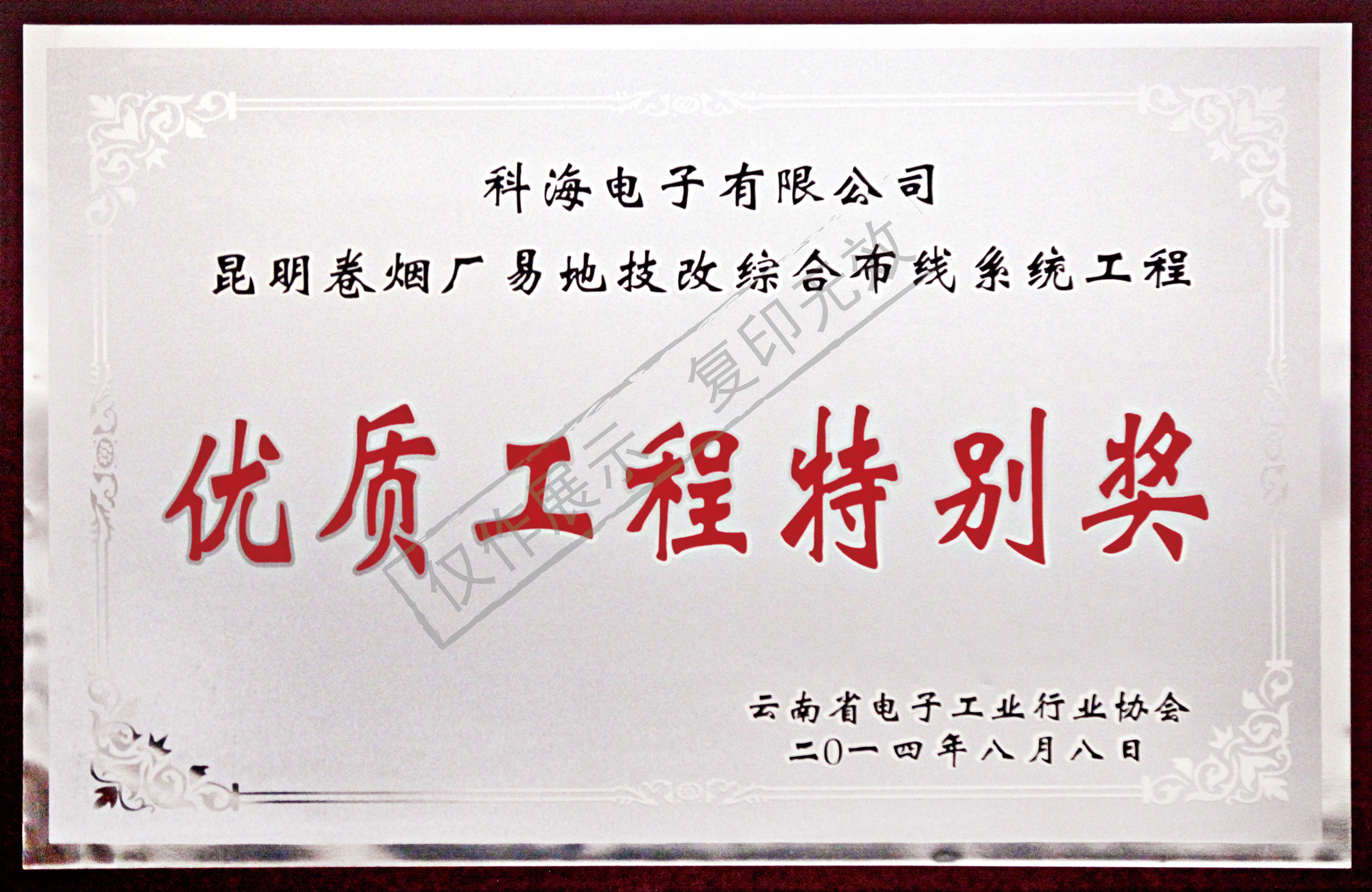 昆明煙廠易地技改優質工程特別獎