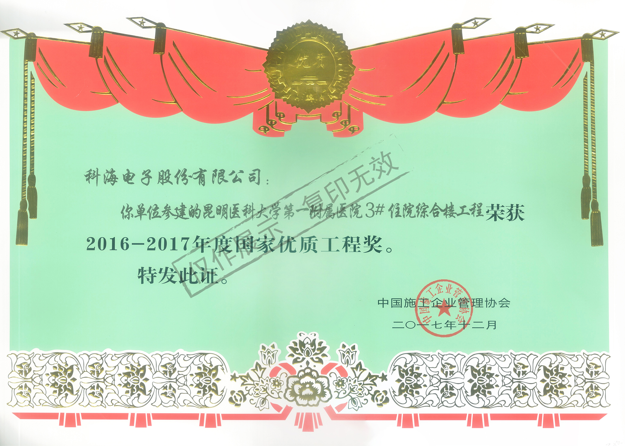 昆明醫(yī)科大學第一附屬醫(yī)院優(yōu)質(zhì)工程獎